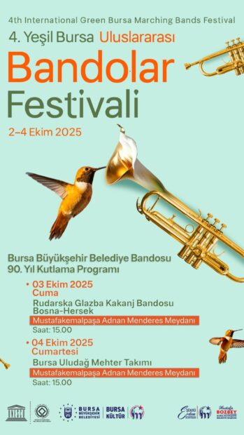 Bursa Büyükşehir Belediyesi tarafından düzenlenen 4. Yeşil Bursa Uluslararası Bandolar Festivali, 2–4 Ekim 2025 tarihleri arasında gerçekleştirilecek. Festival, Bursa Büyükşehir Belediye Bandosu’nun 90. yıl kutlama programı kapsamında Mustafakemalpaşa’da da müzikseverlerle buluşacak.