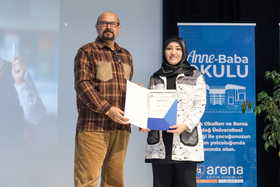 Bursa’nın eğitimdeki öncü markası Arena Eğitim Kurumları’nın, Bursa Uludağ Üniversitesi (BUÜ) iş birliğiyle hayata geçirdiği “Anne Baba Okulu” projesi, ikinci dönemini başarıyla tamamladı. 10 hafta boyunca uzman akademisyenlerden eğitim alan ebeveynler, Arena Okulları Beşevler Kampüsü’nde düzenlenen törenle sertifikalarına kavuştu.