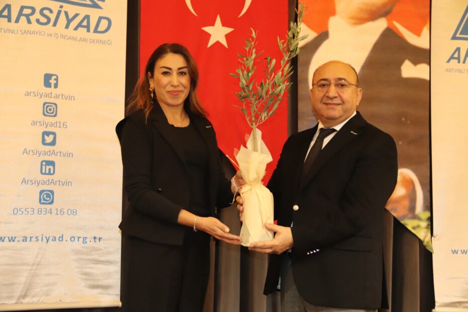 Konuşmaların ardından ARSİYAD Başkanı Erdinç Acar 24 yeni üyeye tek tek üyelik rozetlerini takdim etti. Acar yine her bir yeni üyeye bereketi, verimliliği, dayanıklılığı simgeleyen zeytin fidesi armağan etti.