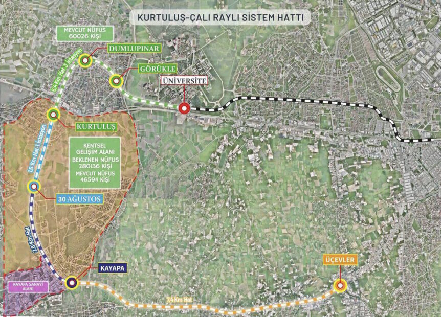 Göreve geldikten sonra Raylı Sistemler Dairesi Başkanlığı’nı kurduklarını hatırlatan Başkan Mustafa Bozbey, yaklaşık 60 kilometrelik planlanan hattı; güzergâh, yolcu talebi, hat entegrasyonları, depo alanları, raylı sistemler araç ihtiyacı ve işletme verimliliğiyle birlikte bütüncül biçimde ele aldıklarını anlattı.