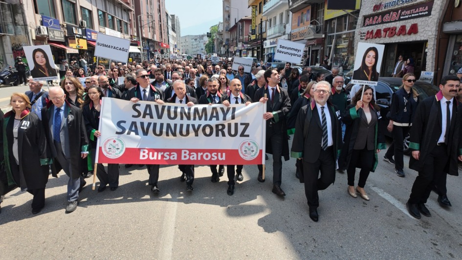 Açıklamaların ardından baro başkanları ve avukatlar, Kıbrıs Şehitleri Caddesi boyunca sloganlar atarak Kent Meydanına yürüdü. Burada Bursa Barosu Başkanı Av. Metin Öztosun, şimdiye kadar katledilen avukatların isimlerini saydı, katılımcılar “burada” diye haykırdı. Eylem, meslek şehitleri için yapılan saygı duruşu ile sona erdi.