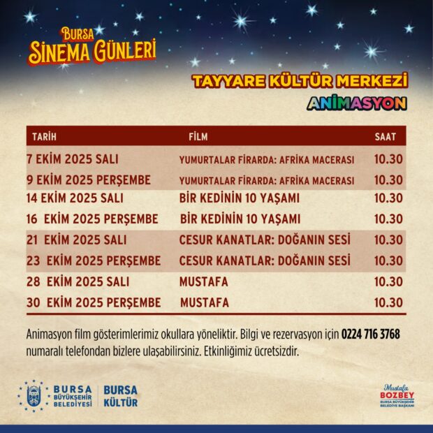 BÜYÜKŞEHİR BELEDİYESİ’NİN HAZIRLADIĞI BURSA SİNEMA GÜNLERİ, 26 EYLÜL-30 EKİM TARİHLERİNDE BURSALILARA YILDIZLARIN ALTINDA SİNEMA KEYFİ YAŞATACAK.