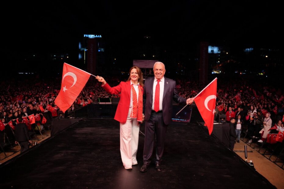 Nilüfer Belediye Başkanı Şadi Özdemir de sahneye eşi Nuray Özdemir ile çıkarak Cumhuriyet Bayramı konuşmasını yaptı. Alandaki sesin, coşkunun ve atan kalplerin Cumhuriyet’in sesi olduğunu söyleyen Başkan Şadi Özdemir, marşın her yıl biraz daha umutlu, biraz daha gür yankılandığını belirtti. Bu marşın, bir milletin ayağa kalkışının, bir halkın özgürlük tutkusunun marşı olduğunu vurgulayan Başkan Şadi Özdemir, “Biz o tutkunun neferleriyiz. Mustafa Kemal’in askerleriyiz. Nilüfer’de, Bursa’da, Türkiye’nin her yerinde Cumhuriyet’in ışığında, Ata’mızın yolunda yürüyen yürekli insanlarız. Bugün 102 yıllık bir mirası kutluyoruz. Bu mirası geleceğe taşıyoruz. Çünkü biz inanıyoruz ki: ancak Cumhuriyet varsa, gelecek var. Bugün, bir milletin küllerinden doğduğu o büyük günün yıl dönümündeyiz. Bugün, karanlıktan aydınlığa uzanan bir inancın, bir direnişin, bir mucizenin izindeyiz. Cumhuriyetimizin 102. yılı kutlu olsun. Bayramımız kutlu olsun” diye konuştu.