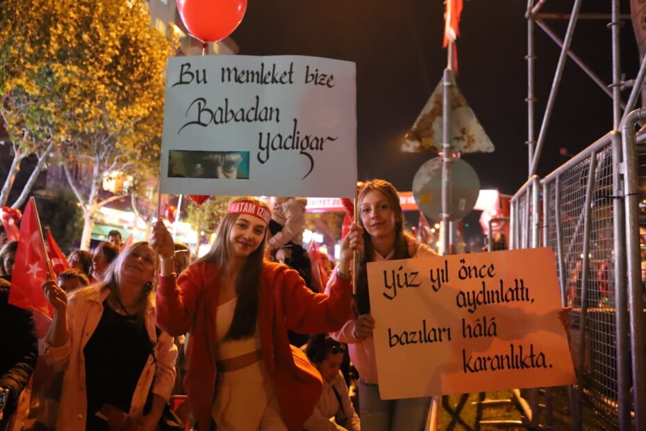 Türkiye’nin birçok yerinde demokrasinin askıda olduğunu, halkın seçtiği başkanların zindanlarda olduğunu söyleyen Başkan Şadi Özdemir, milletin iradesinin tutsak edildiğini dile getirdi. “Bir Ekrem İmamoğlu gider, bin Ekrem İmamoğlu gelir” diyen Başkan Şadi Özdemir “Bu kavga hürriyet kavgasıdır. Bugün geçmişimize olan saygımızı, geleceğimize olan inancımızla birleştirdiğimiz gündür. Bugün, çocuklarımızın gözlerinde Cumhuriyet’in ışığını gördüğümüz gündür. Ve o ışık hiç sönmeyecek. Atam, söz veriyoruz. Senin kurduğun Cumhuriyet’i sonsuza kadar yaşatacağız. Yaşasın Cumhuriyet. Yaşasın Türkiye Cumhuriyeti. Yaşasın Mustafa Kemal Atatürk. Cumhuriyet Bayramımız kutlu olsun” dedi.