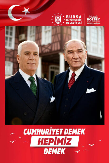 Bursa Büyükşehir Belediyesi, Cumhuriyet coşkusunu daha özel kılmak ve vatandaşlara unutulmaz bir hatıra bırakmak amacıyla kentin farklı noktalarına yapay zekâ kiosklar yerleştirdi. Bu kiosklar aracılığıyla fotoğraf çektiren vatandaşlar, yapay zekâ teknolojisi sayesinde Ulu Önder Mustafa Kemal Atatürk ile aynı karede yer alma mutluluğunu yaşadı. Hayata geçirilen bu uygulama, 28 Ekim’de UNESCO Tarihi Meydanı ve Bursa Şehirlerarası Otobüs Terminali’nde vatandaşlarla buluşurken, 29 Ekim’de ise PodyumPark ile Kent Meydanı’nda vatandaşların hizmetinde olacak.