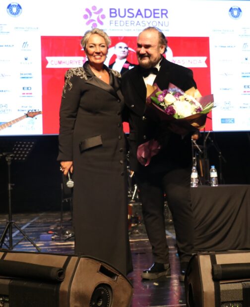 Bursa, İstanbul ve Ankara’daki 6 derneği çatısı altında buluşturan Birleşik Uluslararası Sağlık ve Eğitim Gönüllüleri Dernekleri Federasyonu (BUSADER), Cumhuriyet’in 102. yılı coşkusunu dünyaca ünlü tenor Hakan Aysev’in muhteşem konseri ile yaşattı. Bir dönem Bursa’da eğitim gören ve Bursa’yı “ikinci memleketim” olarak tanımlayan Hakan Aysev, güçlü sesi ve repartuvarı ile davetlilere unutulmaz bir gece yaşattı.