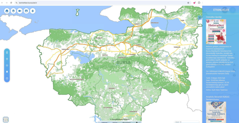 Uygulama, kent hakkında pek çok bilgiye hızlı ve kolay şekilde ulaşım imkanı sunuyor. Kullanıcı dostu ara yüzü ve güçlü harita altyapısı sayesinde ortofotolar, arazi kullanımı, zemin kalitesi haritası, gürültü haritası, nüfus yoğunluğu gibi birçok tematik harita katmanına erişim imkanı sağlanıyor. Kent genelindeki 5000’den fazla önemli nokta (POI) detaylı bir şekilde sunuluyor. Geliştirilen uygulamayla, şehirde yaşayan vatandaşların ve Bursa’yı ziyaret eden turistlerin günlük yaşamlarının kolaylaştırılması hedefleniyor.