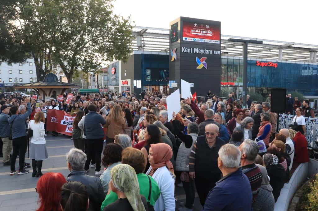 Şehreküstü Meydanı’ndan Kent Meydanı’na sloganlar eşliğindeki yürüyüşün ardından 81 ilde gerçekleştirilen ortak basın açıklaması okundu. CHP Bursa İl Kadın Kolları Başkanı Nigar Savaşkan Bölüker açıklamasında, yoksulluğun artık sadece ceplerde değil, umutlarda da hissedildiğini belirterek şöyle konuştu: “Çocuklar yatağa aç giriyor, kadınlar pazardan eli boş dönüyor, emekliler kuru ekmeğe muhtaç ediliyor. Bu tablo bir kader değil, 23 yıldır iktidarda olan AKP’nin iflas etmiş düzeninin sonucudur. İktidar, yoksulluğu bitirmek yerine yönetmeyi seçti.”