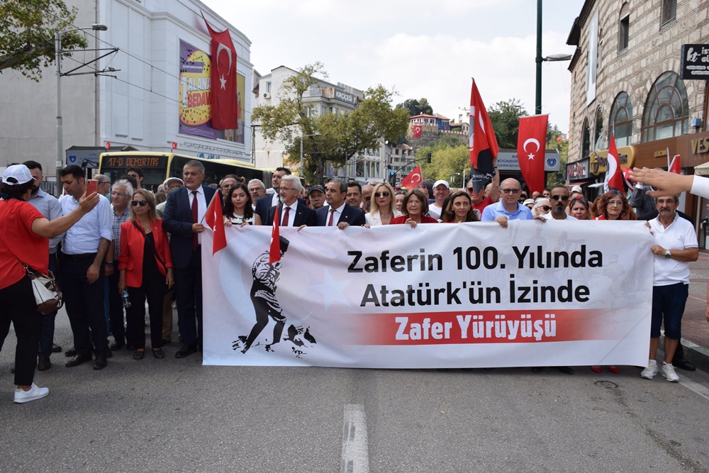 30 Ağustos Zafer Bayramı Cumhuriyet Halk Partisi Bursa İl Örgütü tarafından da çeşitli STK’ların katılımıyla düzenlenen Zafer Yürüyüşü ile kutlandı. CHP Bursa İl Başkanı İsmet Karaca Atatürk Anıtı önündeki konuşmasında Bugün, çökmüş bir imparatorluğun küllerinden ya istiklal ya ölüm diyerek yola çıkanların kurduğu Bağımsız Türkiye Cumhuriyeti’nin temellerinin atıldığı gündür” dedi.