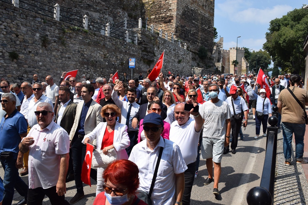 Tophane İstiklal Savaşı Şehitliği önündeki buluşmanın ardından Tophane Meydanı’ndan başlayan yürüyüş Atatürk Anıtı önünde sone erdi. CHP Bursa İl Başkanlığı, Birleşik Kamu-İş Sendikası Bursa Temsilciliği, Atatürkçü Düşünce Derneği Bursa Şubesi, ÇYDD Bursa Şubesi, 29 Ekim Kadınları Derneği, Yeni Kuşak Köy Enstitüleri Derneği’nin çelenk sunumunun ardından saygı duruşunda bulunuldu, İstiklal Marşı okundu.