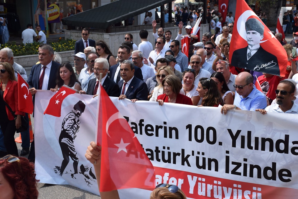 Zafer Yürüyüşü ve Atatürk Anıtı’na çelenk sunma törenine CHP Bursa Milletvekilleri Nurhayat Altaca Kayışoğlu, Prof. Dr. Yüksel Özkan ve Erkan Aydın ile Nilüfer Belediye Başkanı Turgay Erdem ve ilçe başkanları da katıldı.