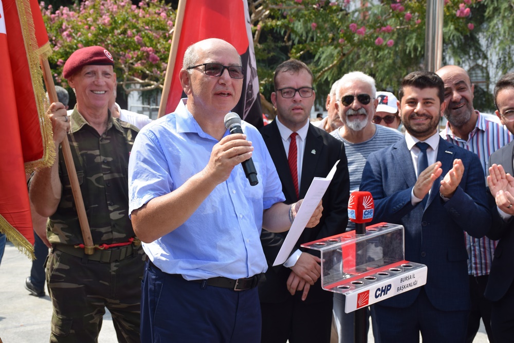 “Benim iki eserim var, birisi Türkiye Cumhuriyeti, diğeri de Cumhuriyet Halk Partisi diyen Ulu Önderimiz Gazi Mustafa Kemal’in bizlere emaneti olan CHP’nin Bursa il örgütü olarak şunu söylemek isterim. Dünyada eşi benzeri olmayan bir lider, diyor ki, benim düşüncelerimin bilimle ters düştüğünü görürseniz, hiç tereddüt etmeden bilimi seçin. Dünyada bir lider, böylesine mütevazi, böylesine öngörülü var mı bilmiyorum. İkinci yüzyıldayız, Cumhuriyet yine onun öngördüğü gibi dahili bedhahlar tarafından kuşatılmış durumda. Dahili bedhahlar yurdun her hücrelerine girdiler. Bugün sarayın puslu odalarında rüşvet, komisyon, atamalar konuşuluyor. Ama emin olun ki, hiçbir şart 1921’in 1922’nin şartlarından daha ağır değildir. Her buluştuğumuzda bu muhalefetteki son buluşmamız dedim ama şu andan itibaren seçim takvimine baktığımızda ne olursa olsun artık bu muhalefetteki son 30 Ağustos Bayramımız. Bundan sonraki ilk 30 Ağustos Zafer Bayramı çok daha büyük bir coşkuyla, devletin tüm kurumlarıyla, tüm hücrelerine kadar kutlayacağımız bir bayram olacak.”