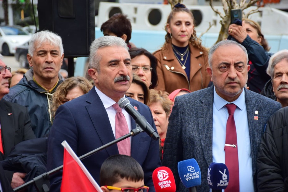 Törene CHP Bursa İl Başkanı Nihat Yeşiltaş, Bursa Milletvekili Orhan Sarıbal, Parti Meclisi Üyesi Canan Taşer, Osmangazi Belediye Başkanı Erkan Aydın, İlçe Başkanları, Parti Yöneticileri ve çok sayıda yurttaşların katıldığı tören, çelenk sunumu, saygı duruşu ve İstiklal Marşı’nın okunmasıyla başladı.
