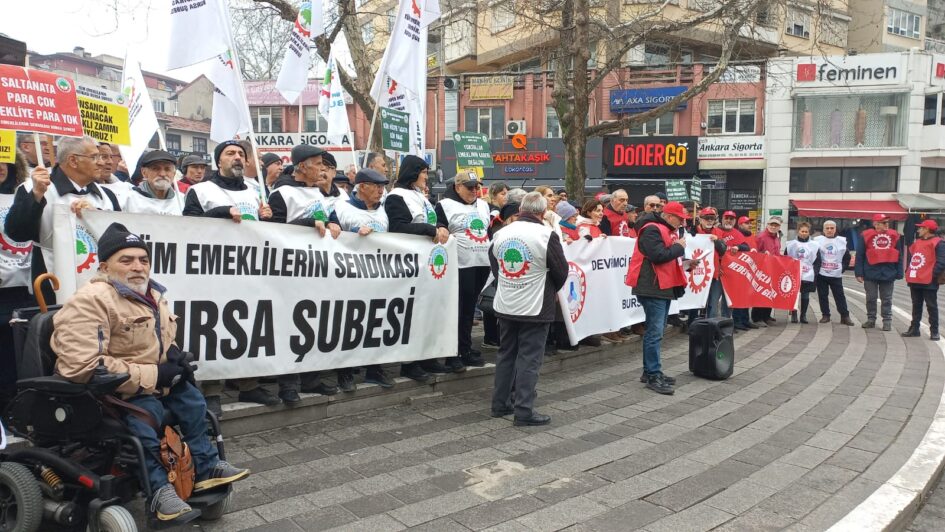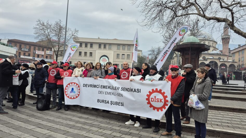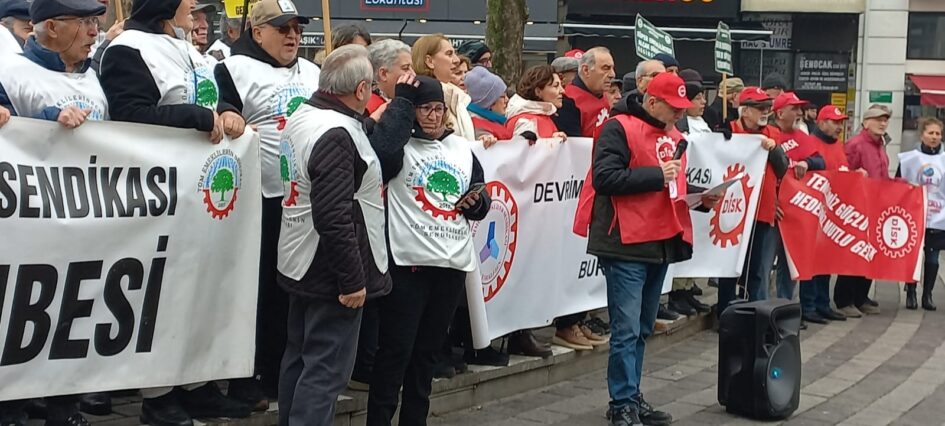 DEV Emekli Sen Bursa Şube Başkanı Sacit Çam tarafından yapılan basın açıklamasında, “Açlık sınırının 30 bin TL’ye, yoksulluk sınırının 100 bin TL’ye dayandığı bir ülkede, bizlere dayatılan bu sefalet tablosuna sessiz kalmak, sadece kendimize değil, çocuklarımızın geleceğine ve bu halka ihanettir” denildi. DEV Emekli Sen Bursa Şube Başkanı Sacit Çam, “2013-2025 yılları arasındaki 11 yılda; yandaş şirketlerin, sermaye gruplarının tam 8 Milyar 900 Milyon TL tutarındaki vergi borcunu ve cezasını bir kalemde sildiniz! Zengine gelince “Affettim” diyenler, iş emekliye gelince “Kasada para yok” diyemez. En düşük emekli maaşına harçlık verir gibi 1.000 TL zam yaparak mutfaktaki bu yangını söndüremezsiniz. O yangın sizi de yakar” dedi.
