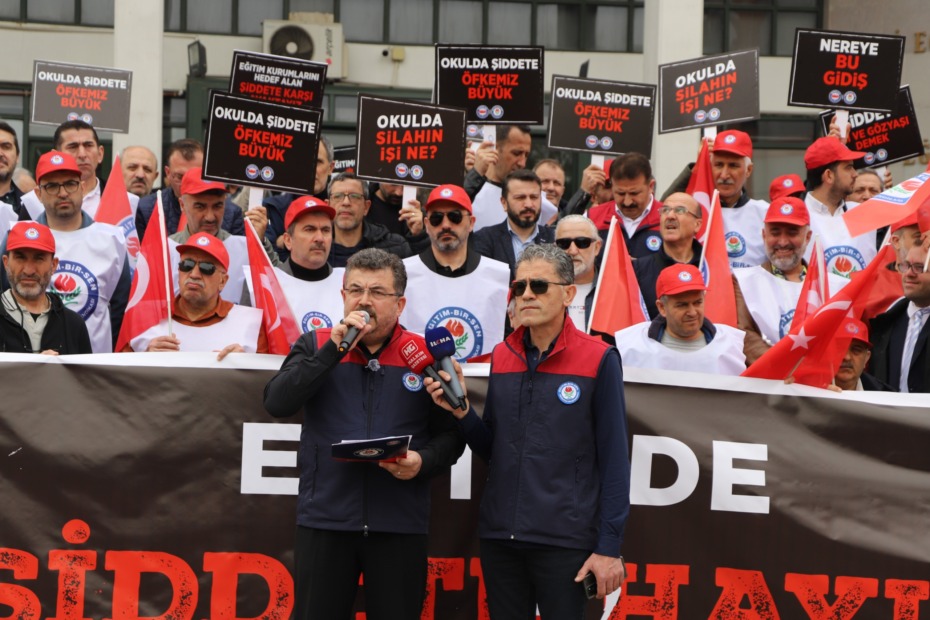 Memur-Sen Bursa İl Temsilcisi ve Eğitim-Bir-Sen Bursa 1 No’lu Şube Başkanı Ramazan Acar, Siverek Ahmet Koyuncu Mesleki ve Teknik Anadolu Lisesi’nde yaşanan saldırıya ilişkin Bursa İl Milli Eğitim Müdürlüğü önünde gerçekleştirdiği açıklamasında, eğitim kurumlarında artan şiddet olaylarına dikkat çekti.