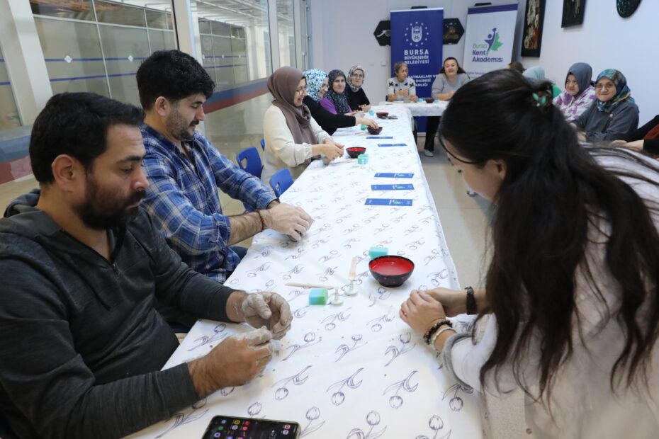 Hem el becerilerini geliştiren hem de sanat yoluyla kendilerini ifade etmenin keyfini yaşayan vatandaşlar, seramik çalışmaları sırasında birbirleriyle iletişim kurarak üretmenin mutluluğunu paylaştı.