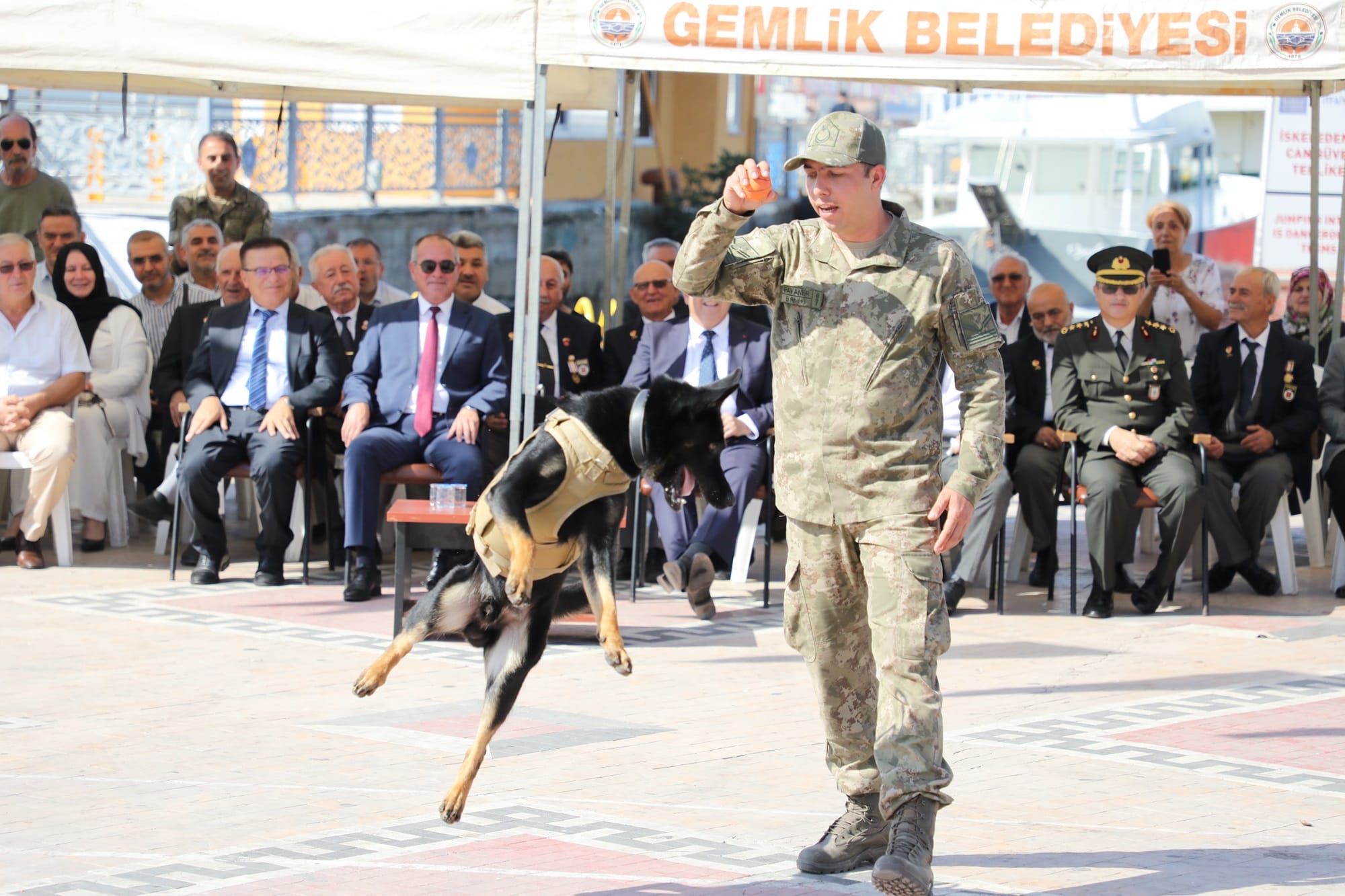 İskele Meydanı’nda yapılan etkinlerde ise; Halk oyunu gösterileri, şiirlerin okunması, Gemlik Askeri Harada eğitilen narkotik madde arama köpeği Alfa’nın gösterileri ve Gemlik Belediye Başkanı Mehmet Uğur Sertaslan’ın konuşması vardı. Sertaslan konuşmasında birlik ve beraberliğin önemine değindi. 11 Eylül’ün takvimde sıradan bir gün olmadığını hatırlatan Başkan Sertaslan, Unutmamak lazım, ibret almak lazım, ders çıkarmak lazım ki aynı şeyler bir kez daha başımıza gelmesin. Yüzyıl önce bugün, Gemlik düşman işgalinden kurtuldu. 10 Eylül günü Gemlikliler düşman çizmeleri tarafından çiğnenen topraklarını görüp gözyaşı döküyordu, kan ağlıyordu. 16 kez yıktılar bizi, 17. kez tekrar kurulduk, zümrüdü anka kuşu gibi küllerimizden doğmuşuz. Bizi ne zaman böldüler ve ayırdılar. Oraya buraya dağıttılar, biz o zaman yok olduk. Ne zamanki bir araya geldik, o zaman bir kere daha kurulduk. Barışın insana en yakışan şey olduğunu asla unutmayın. Bu aziz vatan için şehadete ermiş, gazi olmuş ve bu memleket için savaşmış başta Büyük Önder Gazi Mustafa Kemal Atatürk olmak üzere Gemlik’in kurtuluşu esnasında şehit düşen Şehit Cemal, İmam Bursalı Mehmet Efendi ve Er Mehmet Ali’ye selam olsun buradan, ruhları şad olsun.” dedi.