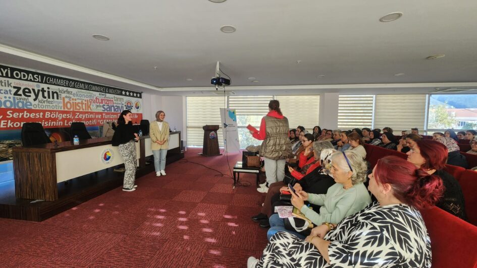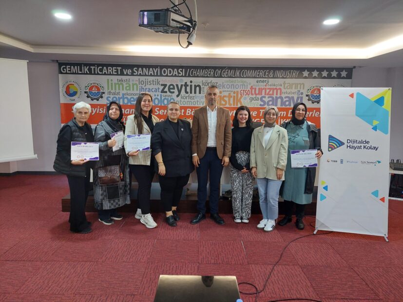 Gemlik Ticaret ve Sanayi Odası toplantı salonunda gerçekleşen programda kadınlara; iş modeli oluşturma, dijital pazarlama, finansal okuryazarlık ve Canva kullanımı konularında 8 saatlik eğitim verildi.