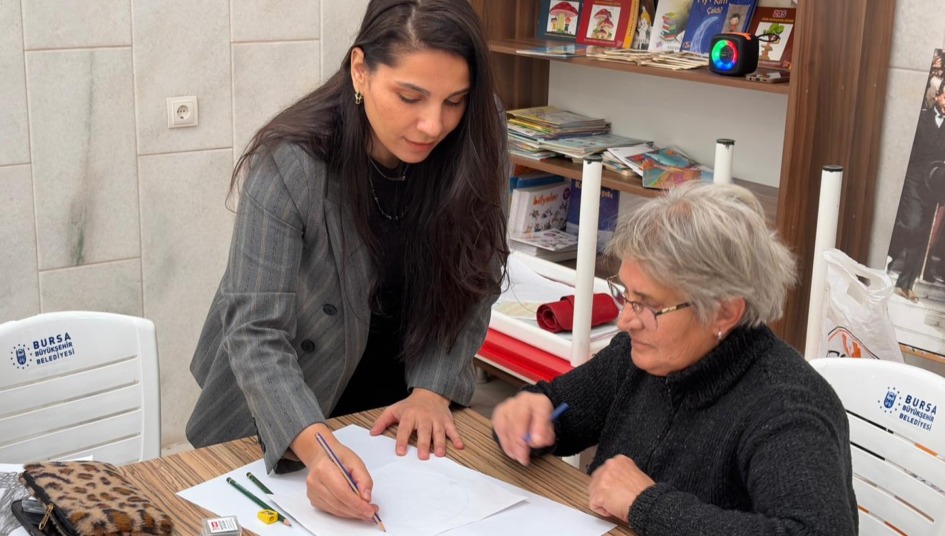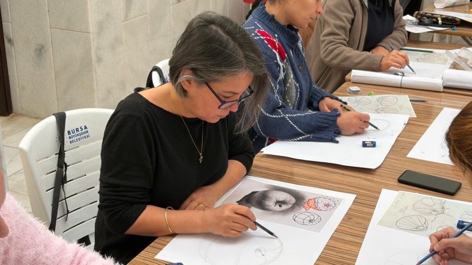 Kadınlara özel olarak devam eden atölye kapsamında katılımcılara çizim ve boyama alanında temel teknikler aktarılırken, farklı malzemelerle yapılan uygulamalar sayesinde sanatsal ifade becerileri güçlendiriliyor.