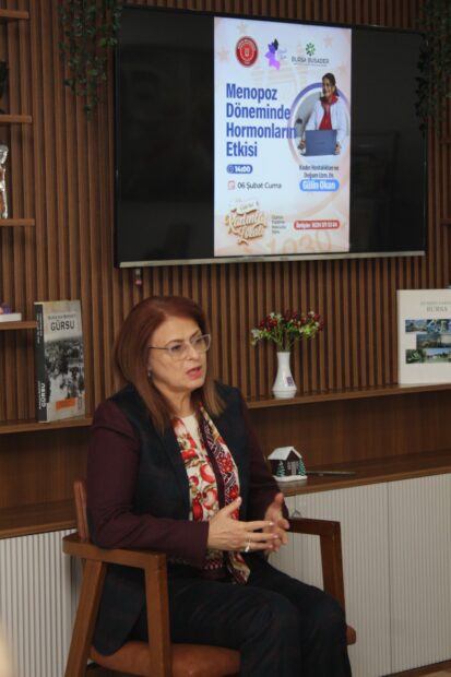 Bursa BUSADER Sağlık Komitesi üyesi Kadın Hastalıkları ve Doğum Uzmanı Opr.Dr. Gülin Okan, Gürsu Kadınlar Lokali’nde düzenlenen seminerde, menopoz döneminde hormonal  değişimler hakkında detaylı bir sunum yaptı. Seminer, kadınların bu dönemi daha sağlıklı ve bilinçli geçirmeleri için rehber niteliğinde bilgiler sunuldu.