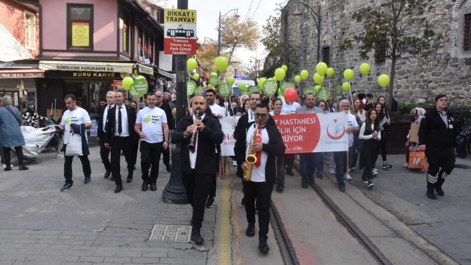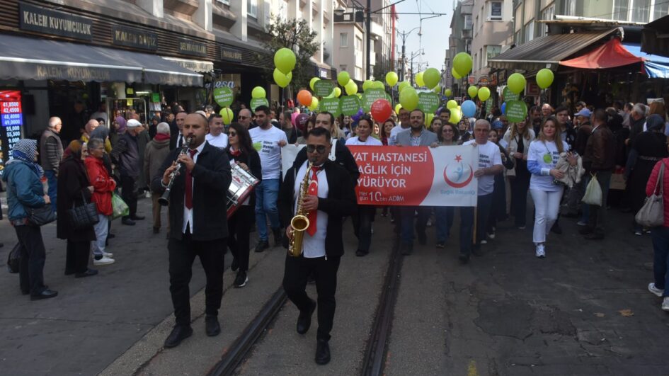 Bursa’da sağlık çalışanları, geleneksel hale getirdikleri diyabet yürüyüşüne vatandaşlar da dahil oldu. Kimi elinde telefonla o anları ölümsüzleştirirken, kimi ise alkışlarıyla sağlıkçılara destek oldu. Gerçekleştirilen yürüyüş, vatandaşların da dikkatini çekerken, Cumhuriyet Caddesi sonunda ise yeşil balonlar gökyüzüyle buluştu.
