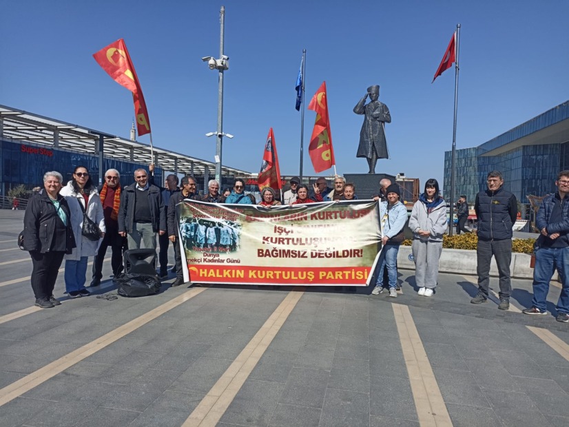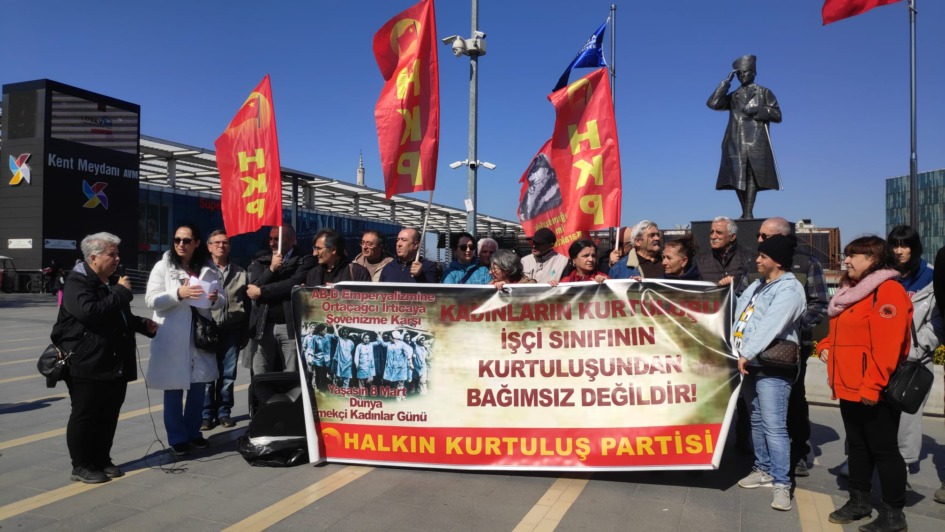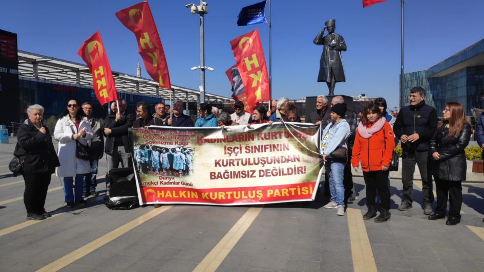 Halkın Kurtuluş Partisi Bursa İl Örgütü tarafından organize edilen 8 Mart Dünya Kadınlar Dayanışma Günü yoğun ilgi gördü. HKP Kadın ve Çocuk Komitesi tarafından hazırlanan etkinlik Kent meydanında gerçekleşti. HKP İl Başkanı Avukat Halil Ağırgöl’ün yanı sıra, Gürsu İlçe Başkanı İlknur Hızal’ın da katıldığı etkinliğe, DİSK Devrimci Emekli Sen Bursa Şube Başkanı Sacit Çam ve yönetimi de destek verdi.