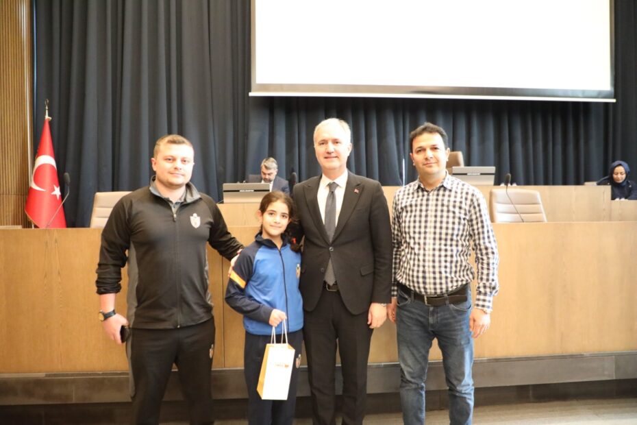 Meclis toplantısı, İnegöl’ü sportif başarılarıyla gururlandıran sporcuların mecliste misafir edilerek ödüllendirilmesi ve onure edilmesiyle başladı. Kayseri yüzme müsabakalarında 100 metre sırt üstü kategorisinde Türkiye 1’incisi olan İnegöl Belediyespor Yüzme Sporcusu Nisa Önder, 100 metre kurbağalama kategorisinde Türkiye 1’incisi olan İnegöl Belediyespor Yüzme Sporcusu Yiğit Alp Sütçü, 100 metre ve 50 metre kurbağalama kategorilerinde 2 Türkiye 1’inciliği elde eden İnegöl Belediyespor Yüzme Sporcusu Ayaz Can Ceyhan ve yine aynı yarışmada 100 sırt üstü Türkiye 3’üncüsü olan İnegöl Belediyespor Yüzme Sporcusu Zeynep Aydınlı ile satranç branşında Türkiye Küçükler ve Yıldızlar Şampiyonasında Türkiye 2’ncisi olan Orhaniye Spor Kulübü Sporcusu Zeynep Sönmez meclis üyeleri huzurunda ödüllendirildi. Sporculara ödülleri Başkan Alper Taban ve Meclis Üyeleri tarafından takdim edildi. Başkan Taban, “Tüm sporcularımızı, antrenörlerini ve ailelerini tebrik ediyorum. İnşallah başarıları daim olsun” dedi.