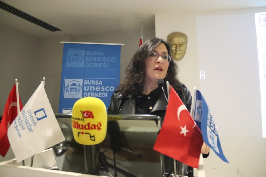 Bursa Akademik Odalar Birliği (BAOB) Ortak Toplantı Salonu’nda düzenlenen etkinliğin açılışında konuşan TMMOB Mimarlar Odası Bursa Şubesi Başkanı Şirin Rodoplu Şimşek, Bursa’nın tarihi ve kültürel mirasına sahip çıkmayı kendilerine görev edindiklerini söyledi.