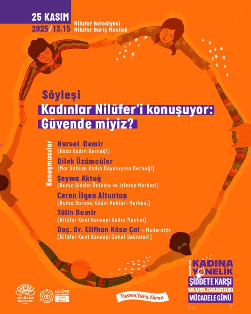 Etkinlikler kapsamında Nilüfer Barış Meclisi’nde “Kadınlar Nilüfer’i konuşuyor: Güvende miyiz?” söyleşisi düzenlenecek. Söyleşi, alanında uzman isimleri ve sivil toplum kuruluşu temsilcilerini bir araya getirecek.