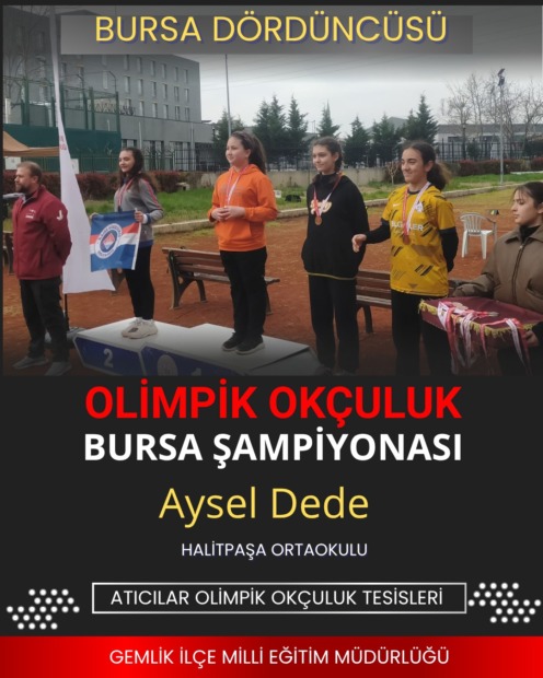 Gemlik Lale Kemal kılıç Ortaokulu Beden Eğitimi Öğretmeni Olimpik okçuluk 2. Kademe antrenör Kürşad Özcan tarafından hazırlanan Gemlikli öğrencilerin Bursa Atıcılar olimpik okçuluk tesislerinde yapılan şampiyonda elde ettikleri başarılar ilçede memnuniyetle karşılanırken Gemlik İlçe Milli Eğitim Müdürü Adnan Uluğ’da başarı elde eden tüm öğrencileri temsilen Borusan ilkokuluna giderek Minik kızlarda Bursa şampiyonu olan Zeynep Yağmur Bulut’u tebrik ederek hediye verdi.