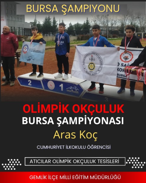 Bursa’da yapılan okullar arası Olimpik Okçuluk Bursa Şampiyonası’nda Gemlik’ten katılan öğrenciler 7 derece elde ederek büyük başarıya imza attılar. Minik kız ve Minik erkeklerle Küçük erkek Yıldız erkek kategorilerinde Gemlikli sporcular şampiyon oldular.