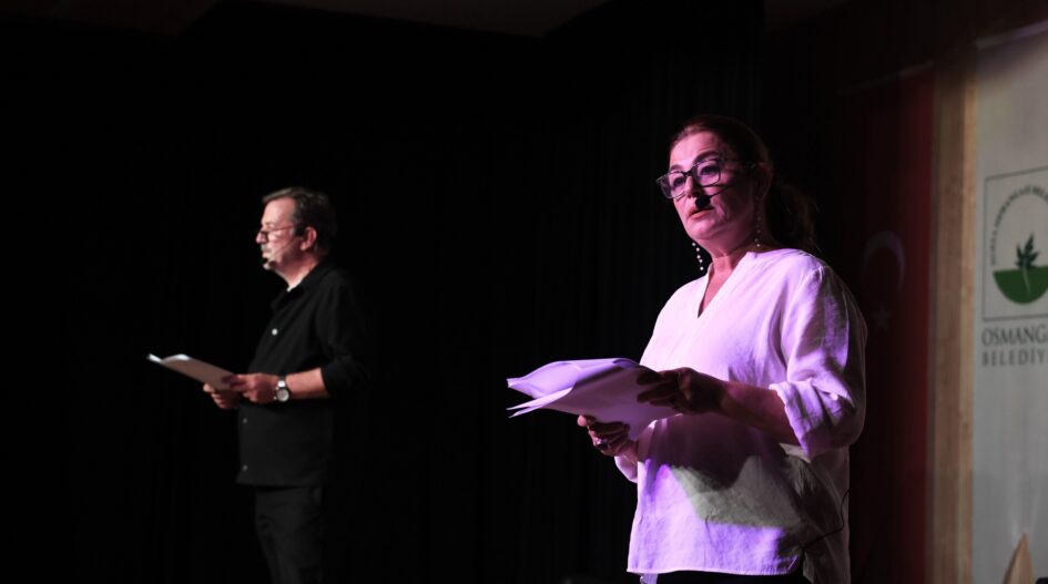 Osmangazi Gösteri Merkezi’nde düzenlenen gösteride Usta Oyuncular Nazan Kesal ve Tayfun Erarslan’ın muhteşem anlatımıyla Yaşar Kemal’in eşsiz eseri sahnelendi. Sanat severlerin yoğun ilgi gösterdiği gecede Anadolu’nun sesi, insanı ve direnci, sahneye taşındı. Edebiyat ve tiyatronun iç içe geçtiği gösteri izleyenler tarafından tam not aldı. Sanata ve sanatçıya büyük değer veren Osmangazi Belediyesi, Osmangazilileri sanatla buluşturmaya devam ediyor. Her hafta çeşitli sanatsal etkinlikler düzenleyen Osmangazi Belediyesi, bunlara bir yenisini daha ekleyerek Yaşar Kemal’in Ortadirek Roman’ından uyarlanan ‘Her Tepeden Bir Gün Doğar’ okuma tiyatrosu düzenleyerek sanat severlerin beğenisine sundu.