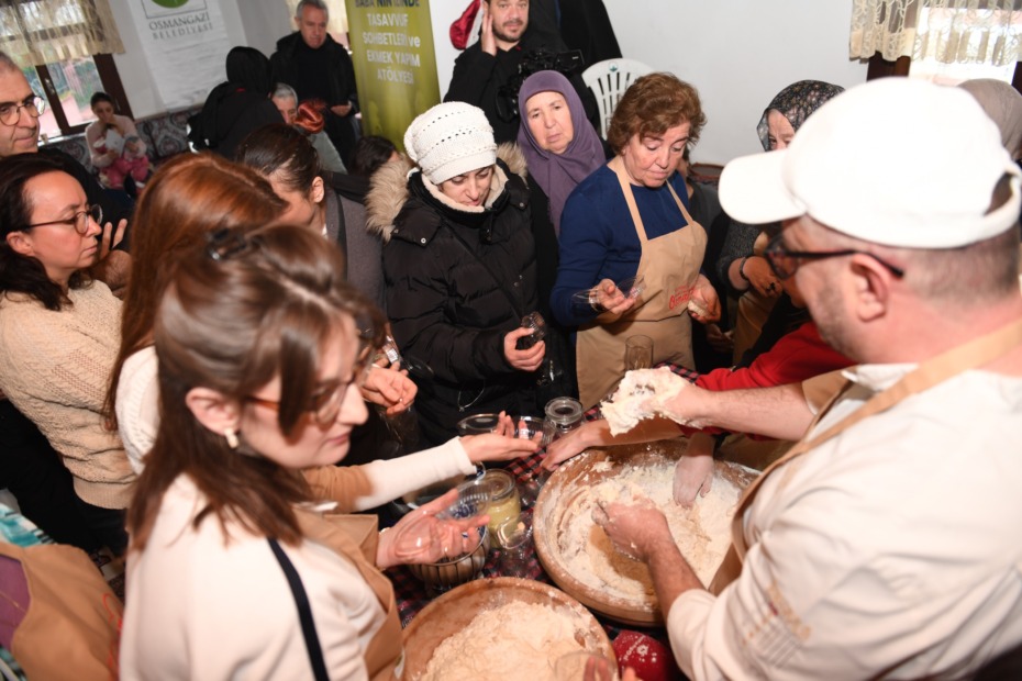 Osmangazi Belediyesi tarafından gerçekleştirilen “Somuncu Baba’nın İzinde Tasavvuf Sohbetleri ve Ekmek Yapım Atölyesi” kapsamında katılımcılara ekşi mayanın yapım süreci uygulamalı olarak anlatıldı. Vatandaşların yoğun ilgi gösterdiği etkinlikte 4. Kuşak Ekmek Ustası Hakan Doğan; ekşi mayanın hazırlanması, çoğaltılması, muhafaza edilmesi ve kuşaktan kuşağa aktarılmasıyla ilgili bilgilerini paylaştı.