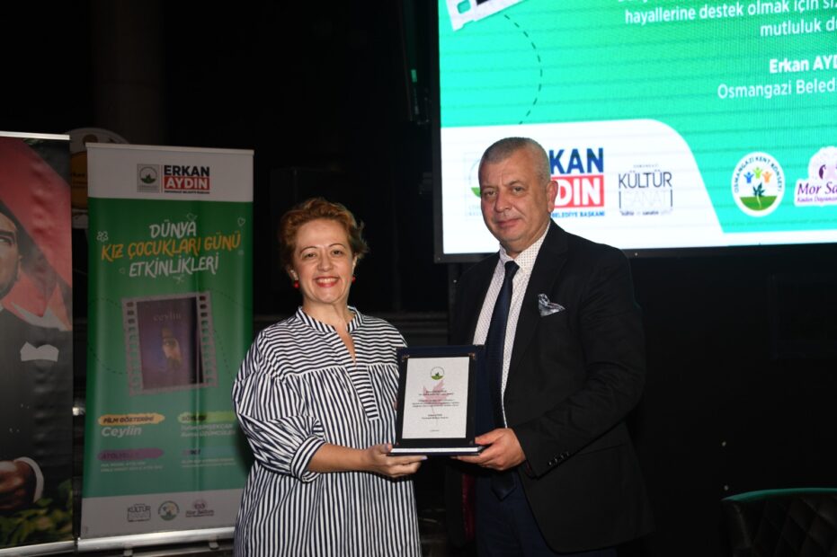 Film hakkında söyleşi gerçekleştiren Mor Salkım Kadın Dayanışma Derneği Kurucularından Burcu Üzümcüler, “Ceylin filmi, ne yazık ki binlerce kız çocuğunun yaşadığı gerçeği gözler önüne seriyor. Eğitimine devam etmek isteyen ama mevsimlik işçilik yapmak zorunda kalan bir çocuğun hikayesi, aslında toplumun vicdanına seslenen bir çağrıdır. Her kız çocuğunun tıpkı Ceylin gibi hayal kurmaya ve bu hayallere ulaşmaya hakkı var. Bu anlamlı günde, kız çocuklarının yaşam koşullarına dikkat çekmek, onların eğitimde, sanatta ve sosyal yaşamda eşit fırsatlara sahip olmalarını savunmak en önemli sorumluluğumuzdur. Bu farkındalık gününe katkı sağlayan, duyarlılığı ve desteğiyle her zaman yanımızda olan Osmangazi Belediyesi’ne ve değerli başkanımız Erkan Aydın’a gönülden teşekkür ediyorum” ifadelerini kullandı.
