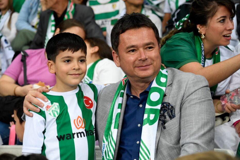 Osmangazi Belediye Başkanı Erkan Aydın, karşılaşmayı çocuklarla birlikte tribünden takip ederek heyecana ortak oldu. İlçenin farklı mahallelerinde yaşayan ve daha önce Bursaspor maçını hiç tribünden izlememiş çocukları muhtarlar aracılığıyla tespit ederek maçlara götürdüklerini söyleyen Başkan Aydın, “Bugün Altınova, Gülbahçe ve Küplüpınar mahallesinden 100 çocuğu Bursaspor maçını izlemek için stada getirdik. Bu projeyle çocuklarımıza yeşil-beyaz sevgisi kazandırmayı hedefledik. Burada çok güzel bir atmosfer var. Bursaspor’a başarılar diliyorum” diye konuştu.