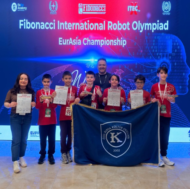 Yapay zekâ ve otonom robotlar konusunda düzenlediği ulusal çaptaki “Robolution” yarışmalarıyla bu alanda ülkemizin öncü eğitim kurumları arasında yer alan Özel Bursa Kültür Okulları, Fibonacci Uluslararası Robot Olimpiyatı Avrasya Şampiyonası’nda büyük bir başarıya imza attı. Ortaokul takımı hem Avrasya şampiyonluğunu, hem de Avrasya 2.’liğini kazanırken, ilkokul takımı da Avrasya 2.’si olarak Roma’da düzenlenecek Dünya Şampiyonası’nda ülkemizi temsil etmeye hak kazandı.
