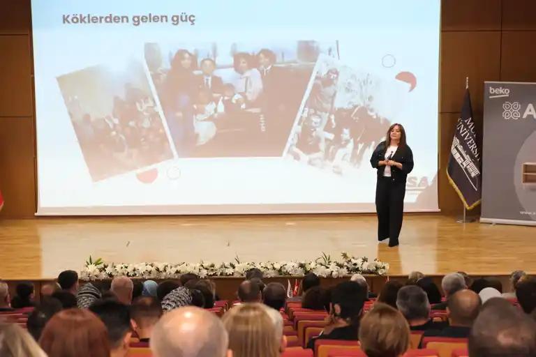 Mudanya Üniversitesi Kampüsü’nde gerçekleştirilen UTİYAP 3. Experience Talks programına konuşmacı olarak EPSA YKB Nurcan Özdemir katıldı. Özdemir, salonda bulunan 300’ü aşkın UTİYAP üyesi ve misafirlere iş hayatının başlangıcından bugüne yaşadıklarını samimi ve yüreklere dokunan bir dille anlattı. Experience Talks açılış konuşmasında konuklara hitap eden Uluslararası Ticaret İş İnsanları ve Yöneticiler Platformu (UTİYAP) Başkanı Halil Coşkun: “Ekonomimiz küresel krizlerin, tedarik zinciri sorunlarının ve yüksek enflasyonun etkisini hissediyor. Ancak büyüme potansiyelimiz yüksek. KOBİ’lerin işletmelerin yüzde 99’unu, istihdamın da yüzde 70’i oluşturduğu bir ekonomimiz var. Sanayimizde düşüşler olsa da bu yapı içerisinde üretim gücümüzü yeniden ayağa kaldırabilecek bir kimyamız olduğu da aşikar ve bu kalkışı yapacak iradede bizlerde mevcut. Geleceğe güvenle bakmamızda bizlere önemli bir veri de kadın istihdamının yüzde 27’lerden bugün yüzde 36seviyesine çıkması da yatıyor. Biliyoruz ki bu oran yeterli değil, zira kadın emeği olmadan gelişim olmaz. İşte bu noktada EPSA YKB Nurcan Özdemir hanımefendi, azmin, çalışmanın ve kadın girişimciliğinin ülkemizdeki en önemli sembollerinden birisidir. Kendisinin tecrübeleri hepimize ışık olacaktır” şeklide konuştu.
