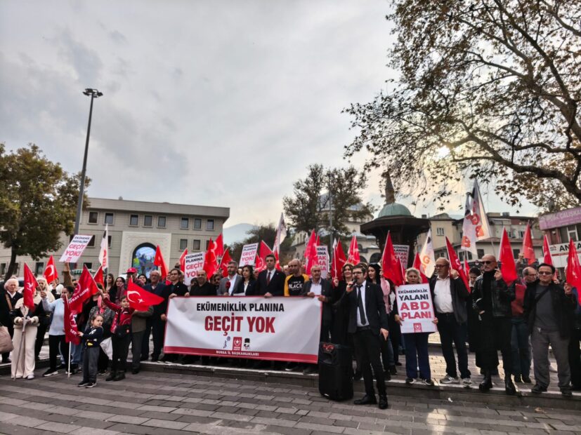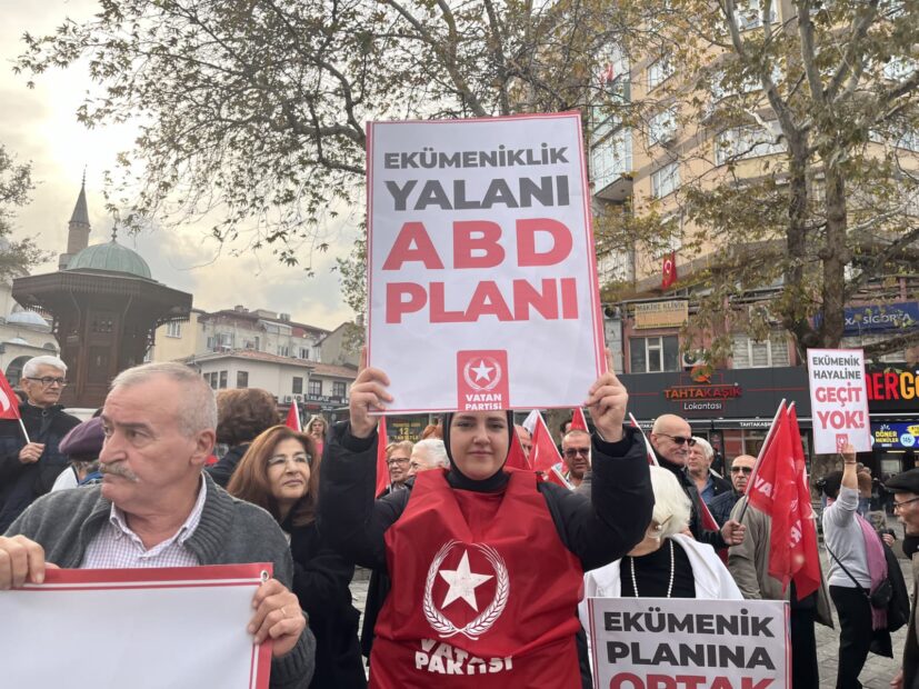 Vatan Partisi Bursa İl Örgütü tarafından yapılan basın açıklamasında, Ekümeniklik Planına sert tepki gösterildi. Vatan Partisi Bursa İl Başkanı Dilek Çınar, “Papa’nın 28 Kasım 2025 tarihinde yapmayı planladığı İznik ziyareti, bölünmüş Hristiyanlığın son kez birleştirilmesi fikrine dayanır. İstanbul (Yeni Roma); İznik (Dogmanın kaynağı). Sonda söyleyeceğimizi başta söyleyelim: Bu nedenle konu ibadet değil, egemenlik meselesidir. Burası Bizans değil, Türkiye Cumhuriyeti. Burası Nicea değil, İznik. Burada sizin sömürge yasalarınız geçmez. Burada sömürgeci Tanzimat hukukunuz geçmez. Burada sizin uyduruk ekümeniklik iddialarınız geçmez. Gazze kan gölüne dönmüşken, İsrail tamamen dinci söylemlerle ve yaptıklarının ilahi emirlere dayandığını vurgularken bu ziyaretin gerçekleşmesi masum bir dini ibadet değildir” dedi.