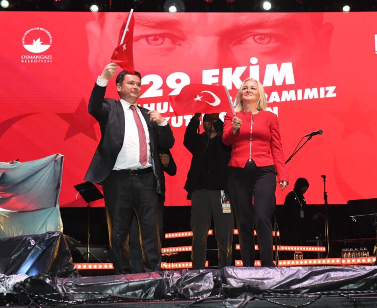 Osmangazi Belediyesi, 29 Ekim Cumhuriyet Bayramı’nın 102’inci yılını, birbirinden özel etkinliklerle kutlamaya devam ediyor. Osmangazi Meydanı’nda düzenlenen 29 Ekim Cumhuriyet Bayramı Konseri’nde sahne alan Türk pop müziğinin yıldızı Zeynep Bastık, yağmurlu havaya rağmen enerjisiyle tüm Bursalılara coşku dolu bir akşam yaşattı. Seslendirdiği hem duygusal hem hareketli parçalardan oluşan repertuarıyla müzikseverleri adeta büyüleyen Bastık, etkileyici sahne performansıyla da izleyicilerden tam not aldı. Yaklaşık 2 saat süren konser boyunca ellerindeki Türk bayraklarıyla meydanı adeta kırmızı beyaza bürüyen yüzlerce kişinin şarkılara hep bir ağızdan eşlik etmesi ise ortaya renkli görüntüler çıkardı.